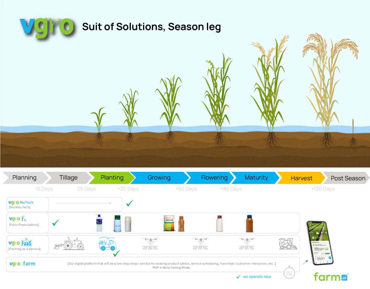 At FARMAI, we embrace the uniqueness of each farm (small vs big), farmer or a crop, offering tailored advisory, products, and on-field assistance from seed to harvest. Our AI-powered VGRO.FARM platform redefines sustainable agriculture, providing scalable support for every participant in the ecosystem. With years of expertise, VGRO.FARM’s Fx-powered guidance and instant procurement simplifies & elevates farming practices, making them efficient, sustainable while ensuring continuity. Our vision is a forward-looking agriculture where technology seamlessly integrates with expertise, empowering farmers and “farming as a service” providers to thrive in a dynamic and evolving landscape.
